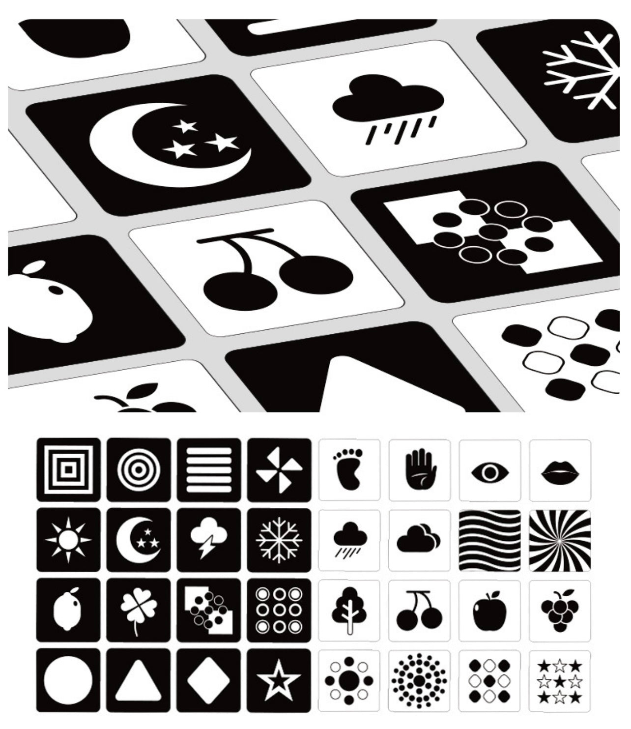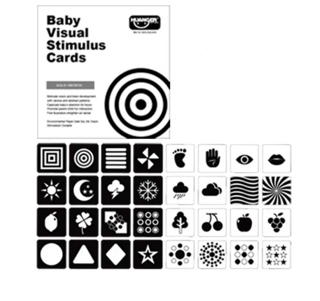Stimulate, entertain & develop your baby from birth with these black and white, strong contrast cards!