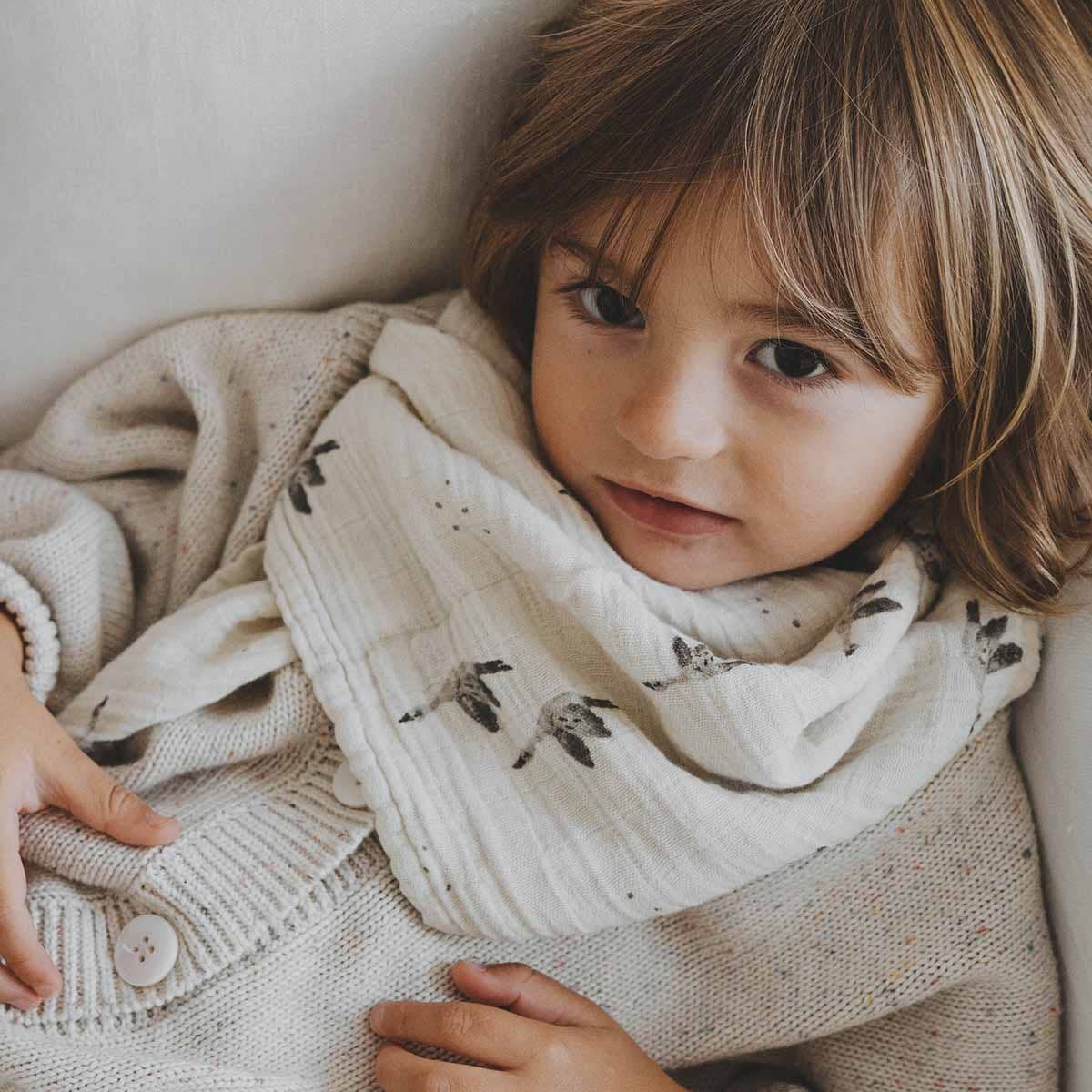 Muslins are a baby essential that you’ll never regret having too many of. Ultra-practical, it has several functions: bib, comforter, blanket, changing table, shoulder protector after the bottle, or as a small scarf. This material is exceptionally soft, breathable and respectful of the delicate skin of babies.