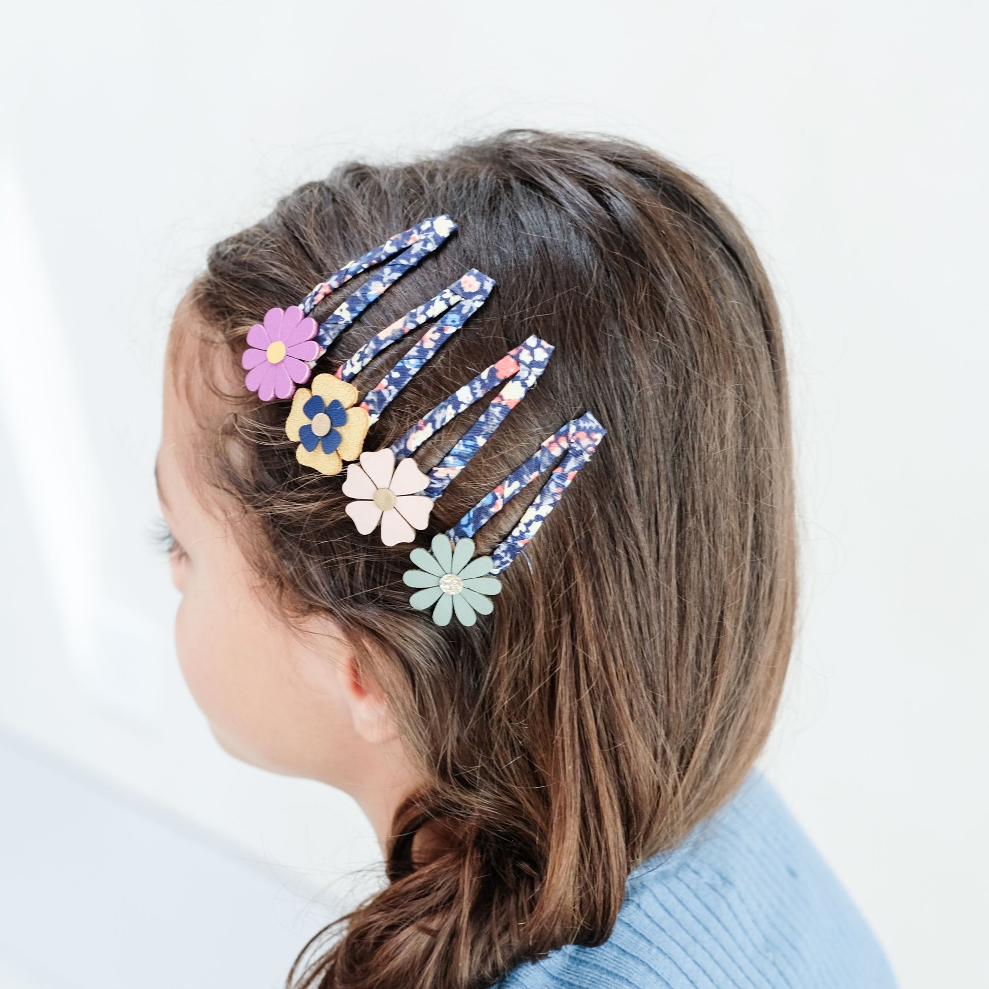 A perfectly pretty floral clip pack, ideal for mixing and matching! Wrapped in a beautiful autumn inspired floral print fabric and finished with contrasting soft padded flowers, these clips are pretty as a petal!