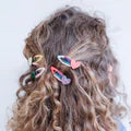 Brand new bright and beautiful Autumn heart mini clic clacs! Featuring trails of multicoloured grosgrain ribbon, these are perfect for adding a pop of colour to autumnal outfits!