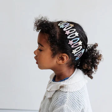 Twinkle twinkle little star! A sparkly pack of mini clips in a beautifully neutral palette sure to compliment any outfit! Perfect for little ones with thinner hair!