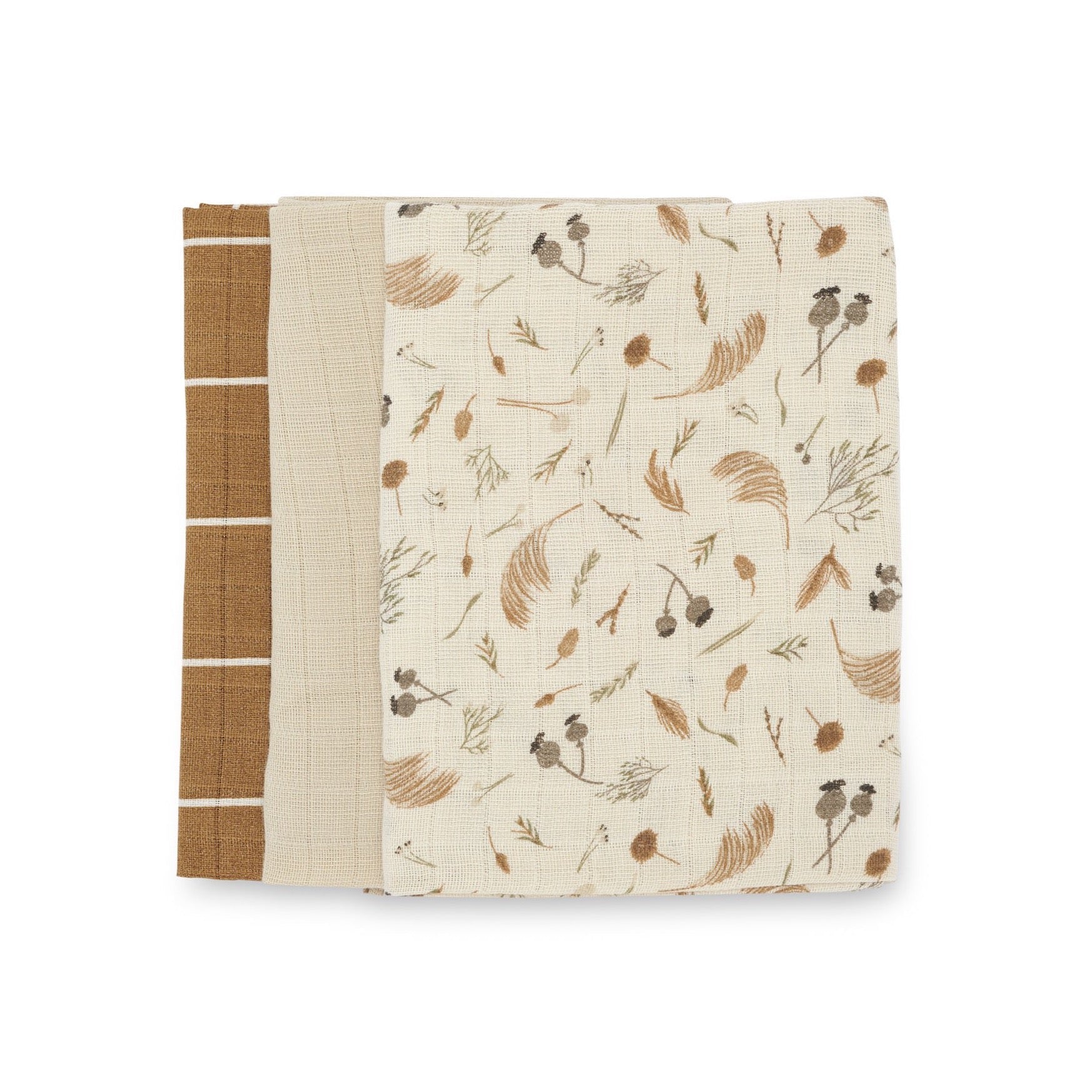 Set includes 3 muslin squares.