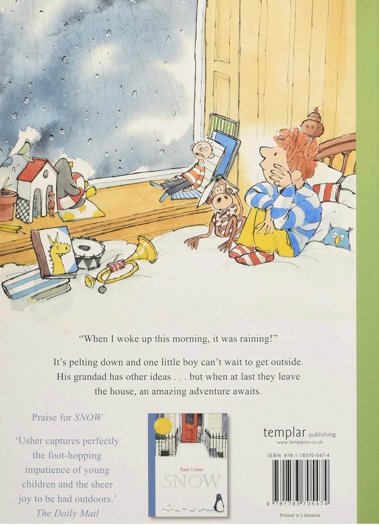 Grandpa seems to have a VERY important letter to write. Then that very important letter has to be posted, despite the rain and floods. As they finally go outside, Sam and Grandpa have a magical adventure. Rain is the follow-up to the acclaimed Snow; and is the second title in a four-book series based on the weather.