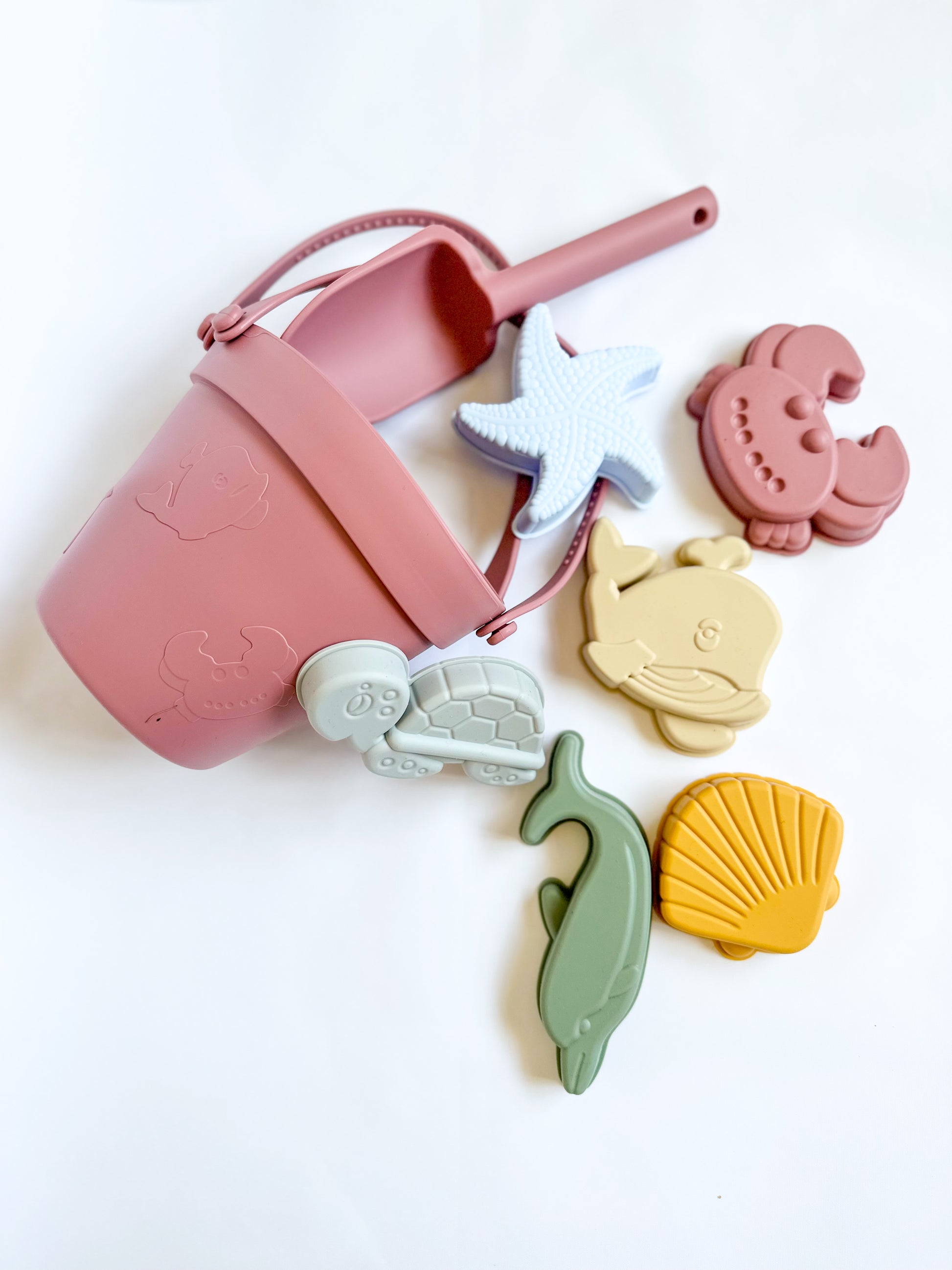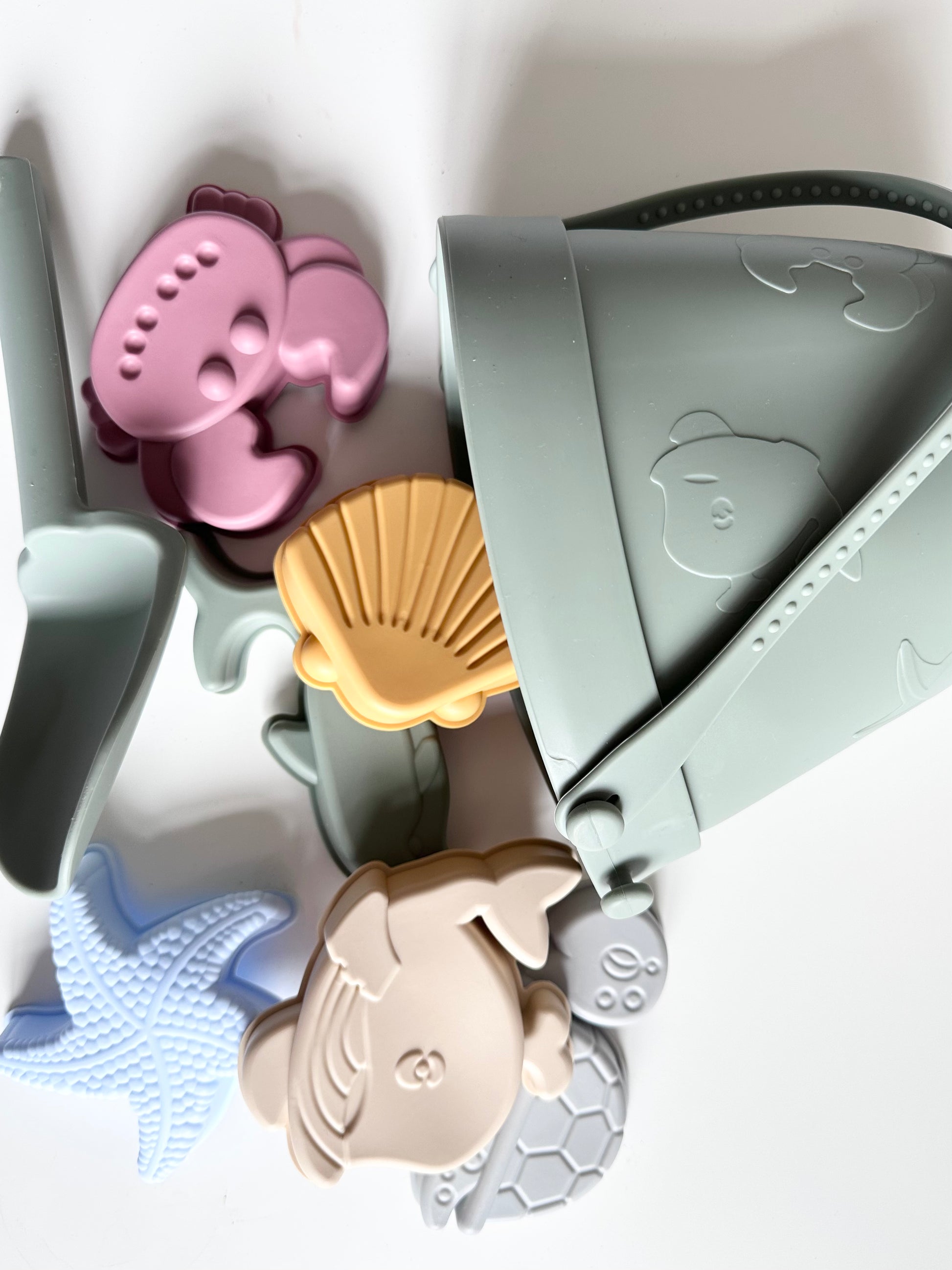 Encourage open ended play with our soft silicone 8 piece beach play set. This set includes 6 moulds and a spade perfect your tiny hands.