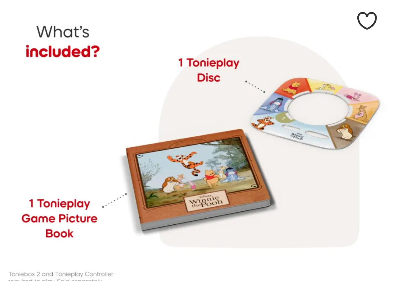 Tigger’s bouncing has scattered treasures across the Hundred Acre Wood! In this interactive Tonieplay Game for ages 3+, kids use the included picture book to help Pooh and friends find what’s been lost. With six sweet stories, 30 hidden objects, and a bonus song to unlock, this gentle, search-and-find game is full of classic Winnie the Pooh charm. Tonieplay unlocks new ways to play, only on Toniebox 2. Kids just pop the Tonieplay Disc and Controller onto the Toniebox 2 and let the hunt begin!