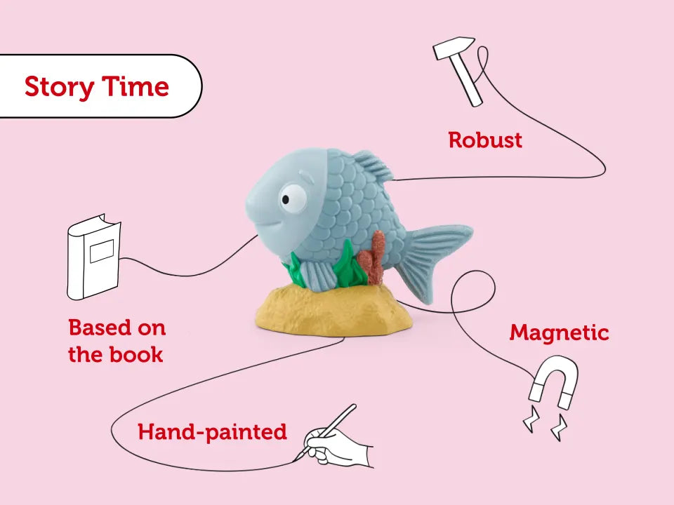 Meet the little fish with a talent for tall tales. Tiddler’s always late for school every day, but he’s always got an imaginative excuse. All your little minnows need to do to join Tiddler’s classroom is pop this Tonie on their Toniebox. It’s just a silly story…or is it?