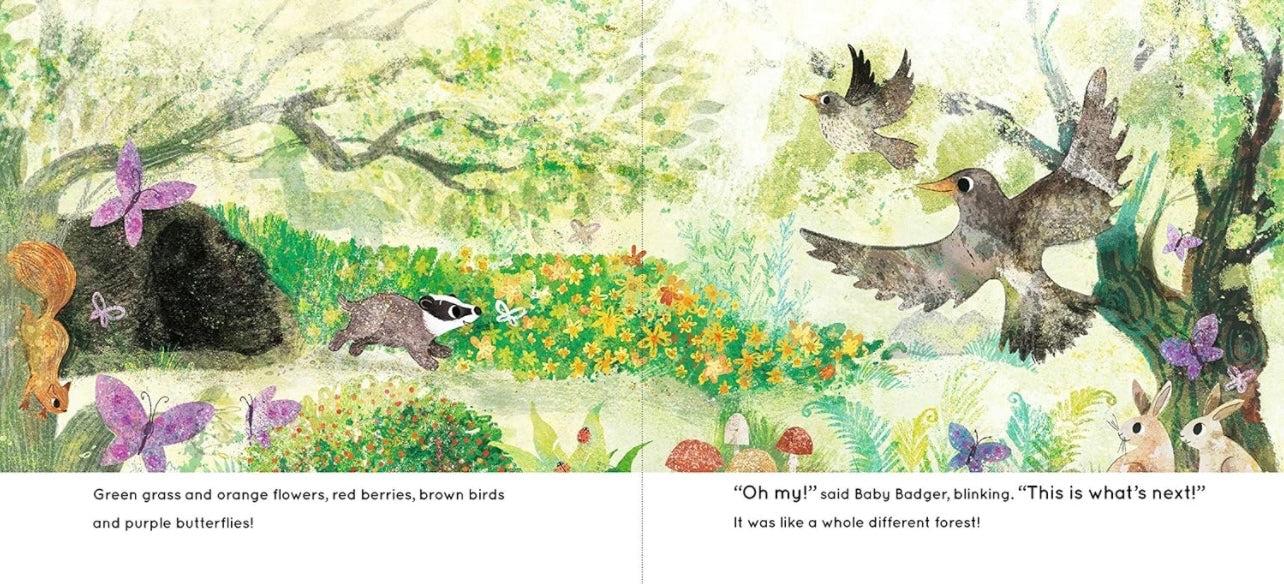 Curious Baby Badger loves exploring. He is eager to see, and know, more of the world beyond his den. So, one night, his daddy takes him on a moonlit adventure through the still, black-and-white forest up above their underground home. And that sets Baby Badger's imagination soaring. What's daytime like? he wonders. What's next?